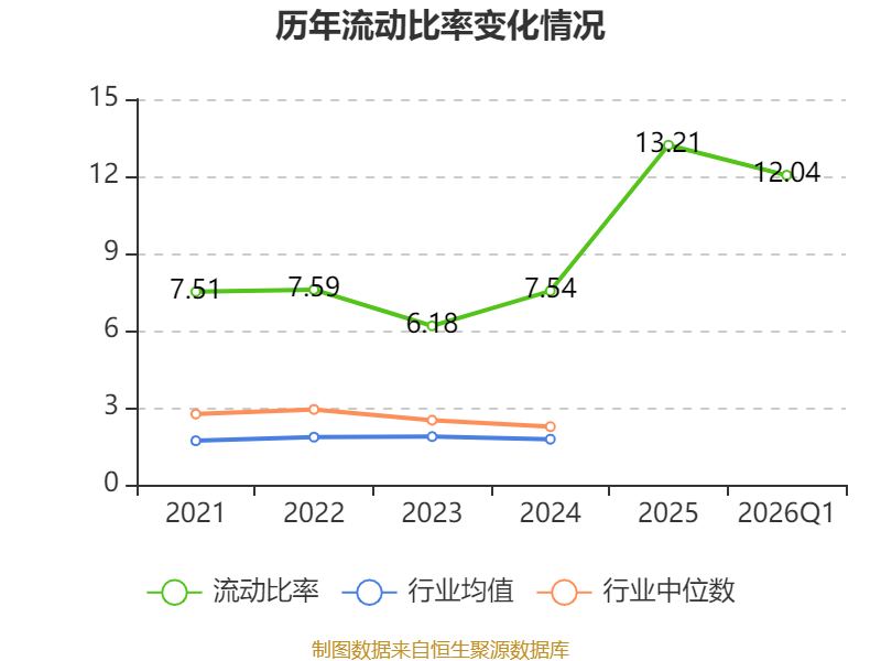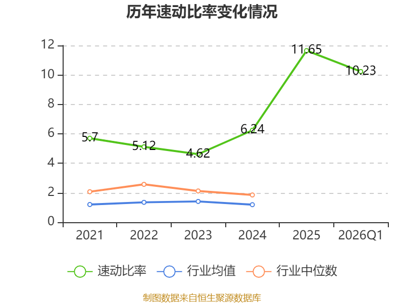 2026年第一季度,公司流动比率为12.04,速动比率为10.23。
