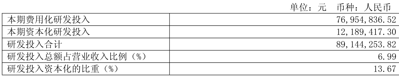 2025年全年,公司研发投入金额为8914.43万元,同比下降2.16%;研发投入占营业收入比例为6.99%,相比上年同期上升0.82个百分点。此外,公司全年研发投入资本化率为13.67%。