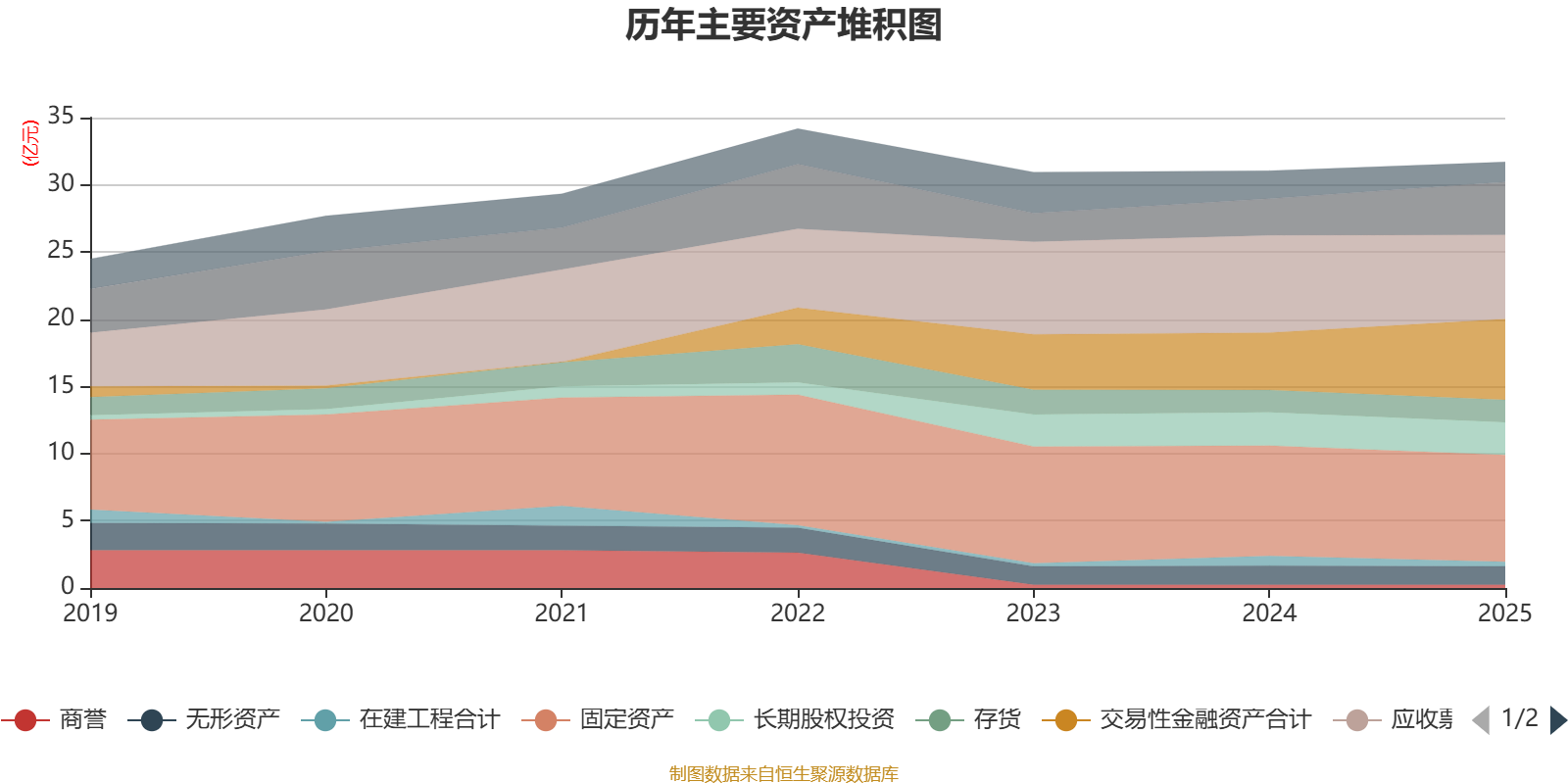 资产重大变化方面,截至2025年末,公司交易性金融资产合计较上年末增加40.97%,占公司总资产比重上升5.23个百分点;货币资金较上年末增加43.7%,占公司总资产比重上升3.59个百分点;应收票据及应收账款较上年末减少13.43%,占公司总资产比重下降3.55个百分点;应收股利较上年末减少100%,占公司总资产比重下降1.9个百分点。