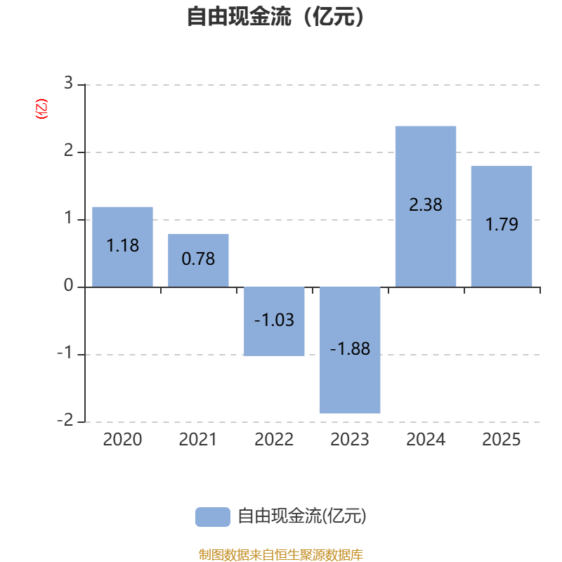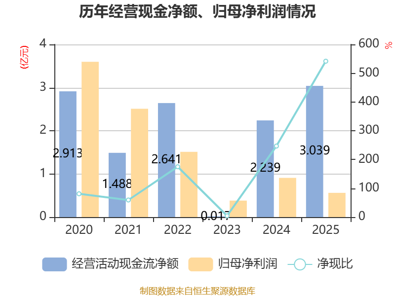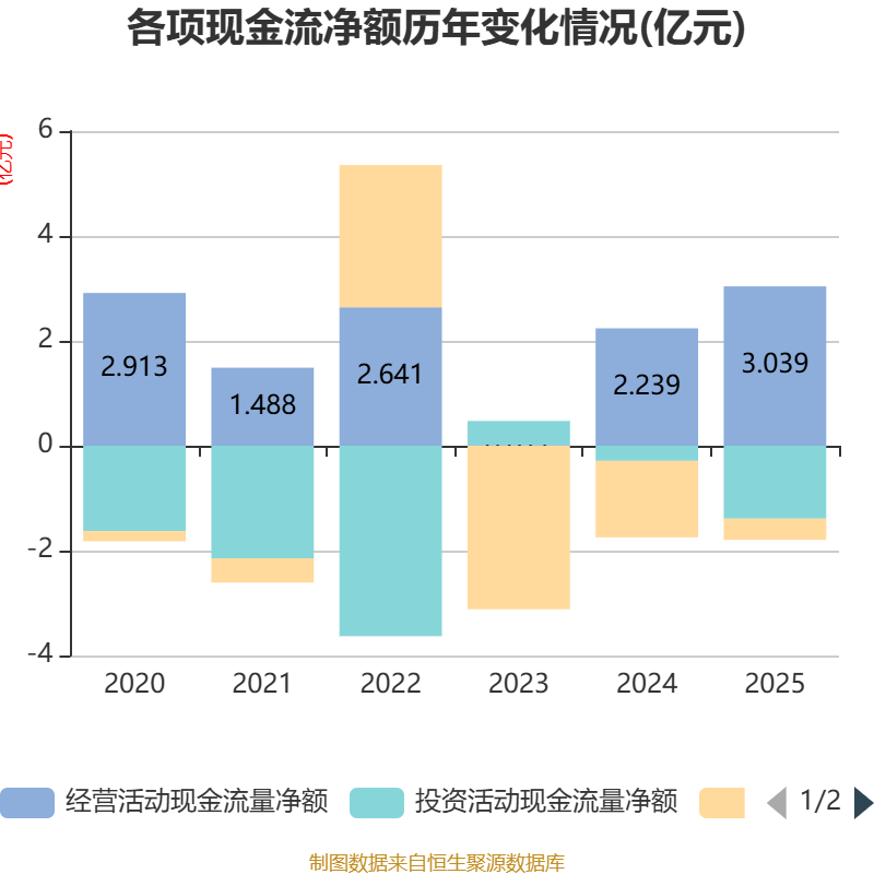 截至2025年,公司经营活动现金流净额为3.04亿元,同比增长35.72%;筹资活动现金流净额-4027.48万元,同比增加1.06亿元;投资活动现金流净额-1.39亿元,上年同期为-2883.6万元。