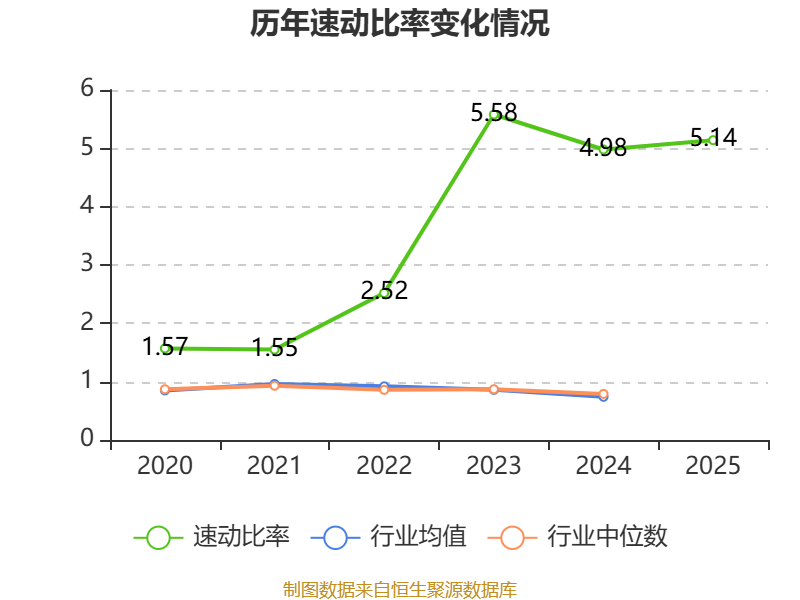 2025年,公司流动比率为5.64,速动比率为5.14。