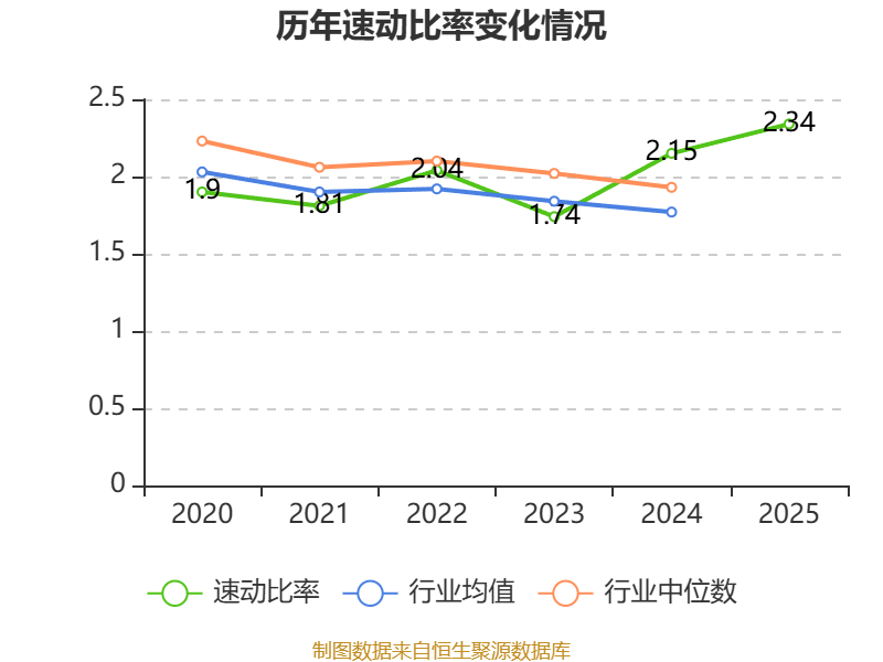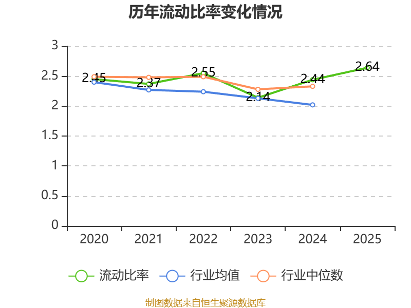 2025年,公司流动比率为2.64,速动比率为2.34。