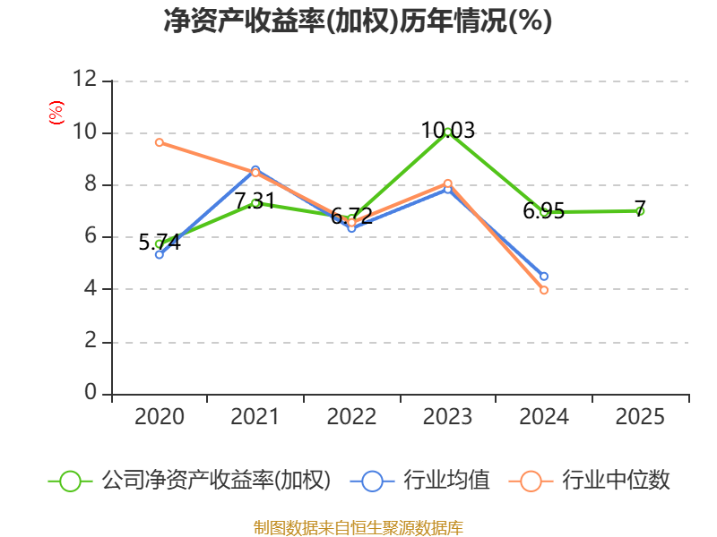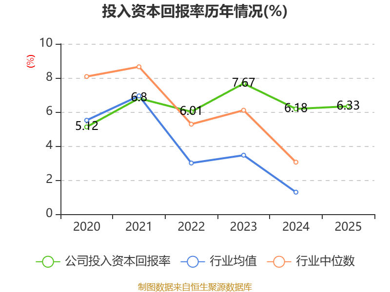 数据显示,2025年公司加权平均净资产收益率为7%,较上年同期上升0.05个百分点。公司2025年投入资本回报率为6.33%,较上年同期上升0.15个百分点。
