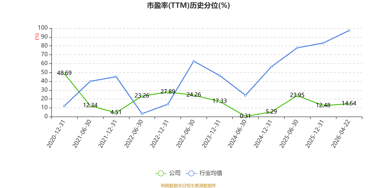 市盈率、市净率为负时,不显示当期分位数,会导致折线图中断。