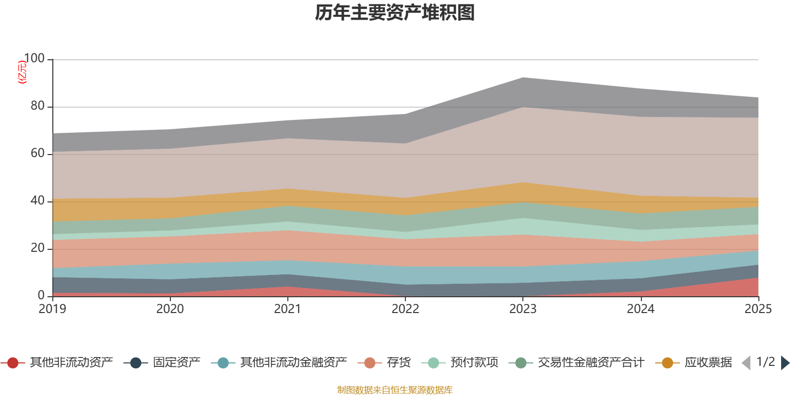 资产重大变化方面,截至2025年末,公司其他非流动资产较上年末增加286.07%,占公司总资产比重上升7.02个百分点;应收票据及应收账款较上年末减少48.43%,占公司总资产比重下降3.95个百分点;一年内到期的非流动资产较上年末减少49.33%,占公司总资产比重下降2.33个百分点;货币资金较上年末增加1.27%,占公司总资产比重上升2.19个百分点。