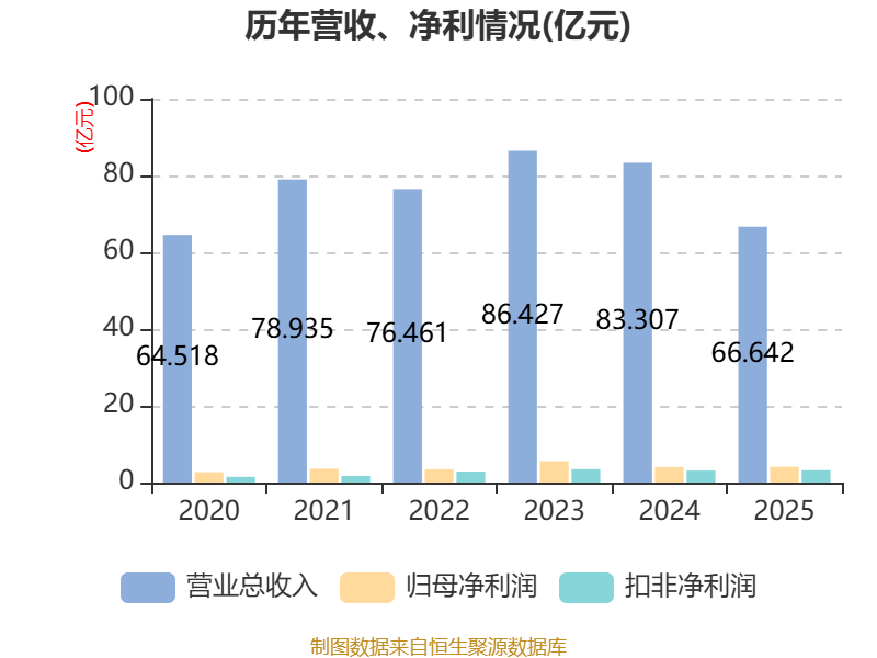 中证智能财讯时代出版(600551)4月23日披露2025年年度报告。2025年,公司实现营业总收入66.64亿元,同比下降20.00%;归母净利润4.1亿元,同比增长2.56%;扣非净利润3.21亿元,同比增长2.93%;经营活动产生的现金流量净额为7.3亿元,同比增长2.98%;报告期内,时代出版基本每股收益为0.6043元,加权平均净资产收益率为7.00%。公司2025年度分配预案为:拟向全体股东每10股派现2元(含税)。