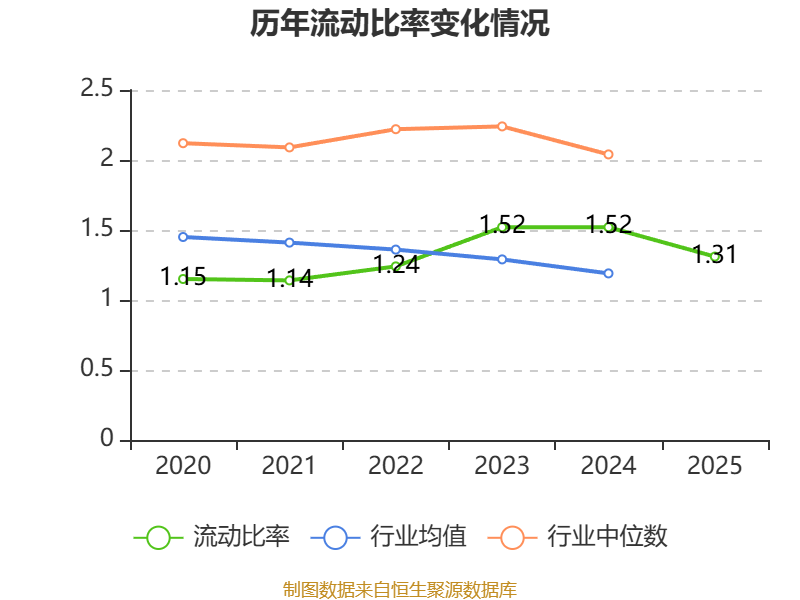 2025年,公司流动比率为1.31,速动比率为0.99。