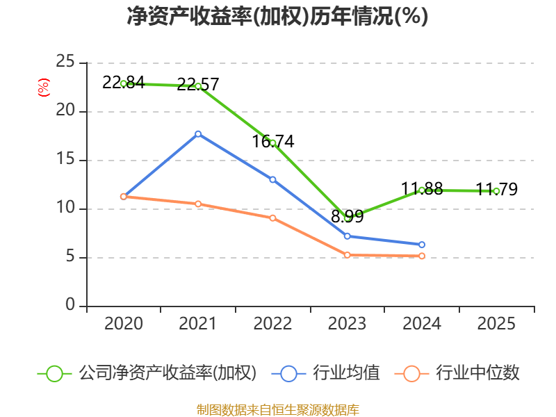数据显示,2025年公司加权平均净资产收益率为11.79%,较上年同期下降0.09个百分点。公司2025年投入资本回报率为11.04%,较上年同期下降0.3个百分点。