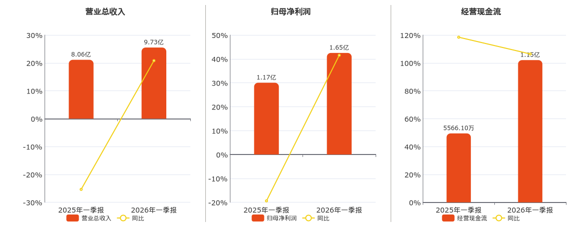 公司营业总收入为9.73亿元,较去年同报告期营业总收入增加1.68亿元,同比较去年同期上涨20.80%。归母净利润为1.65亿元,较去年同报告期归母净利润增加4840.38万元,同比较去年同期上涨41.53%。经营活动现金净流入为1.15亿元,较去年同报告期经营活动现金净流入增加5922.32万元,实现2年连续上涨,同比较去年同期上涨106.40%。