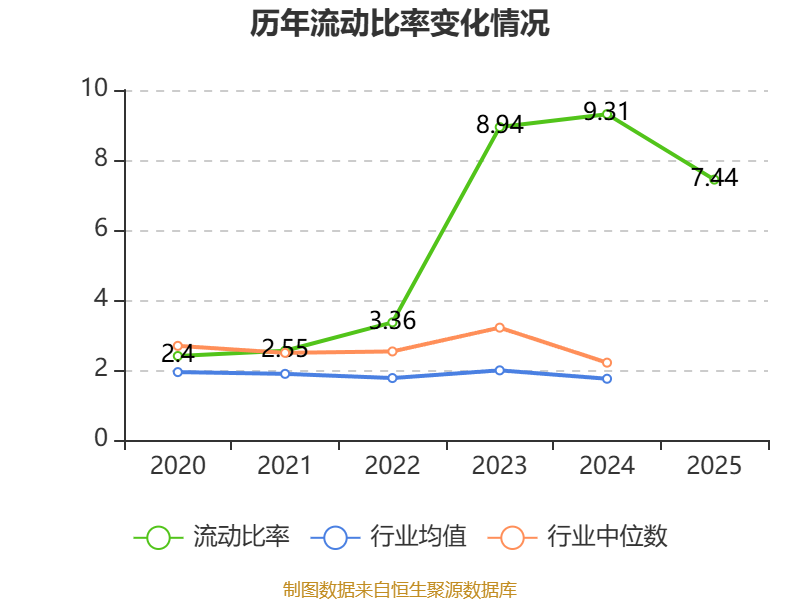 2025年,公司流动比率为7.44,速动比率为6.93。