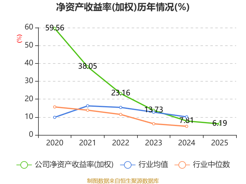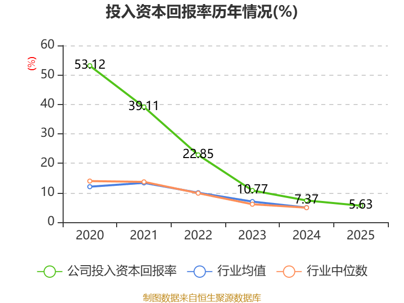 数据显示,2025年公司加权平均净资产收益率为6.19%,较上年同期下降1.62个百分点。公司2025年投入资本回报率为5.63%,较上年同期下降1.74个百分点。