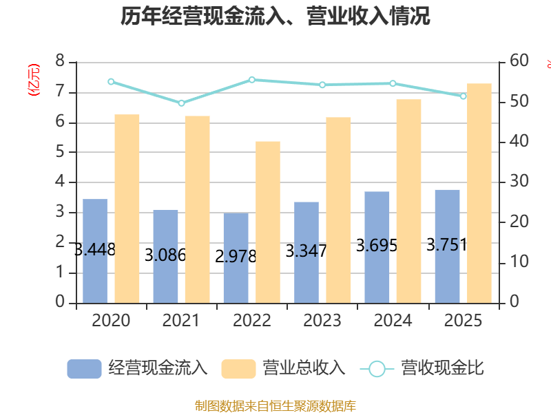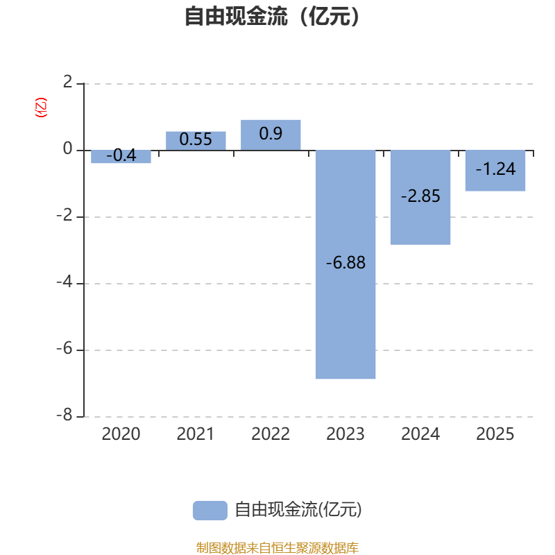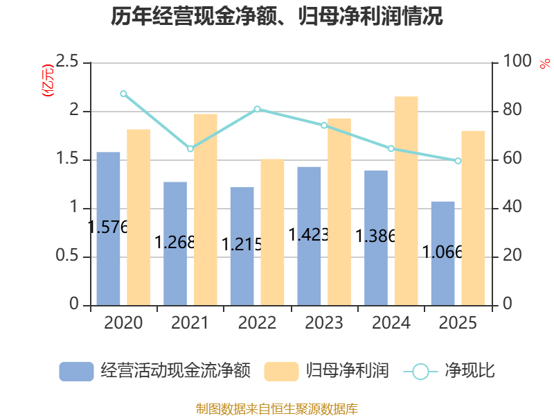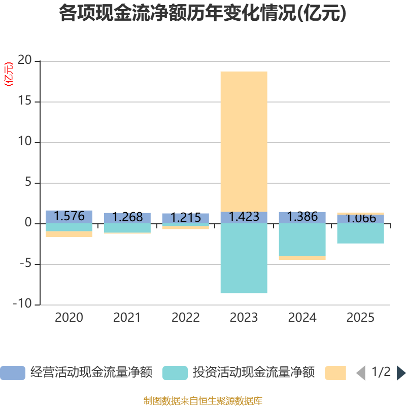 截至2025年,公司经营活动现金流净额为1.07亿元,同比下降23.07%;筹资活动现金流净额2513.94万元,同比增加7573.97万元;投资活动现金流净额-2.48亿元,上年同期为-4亿元。