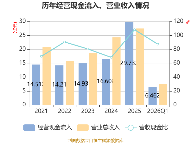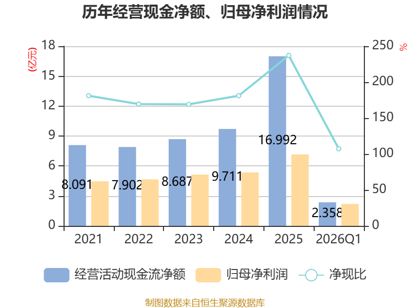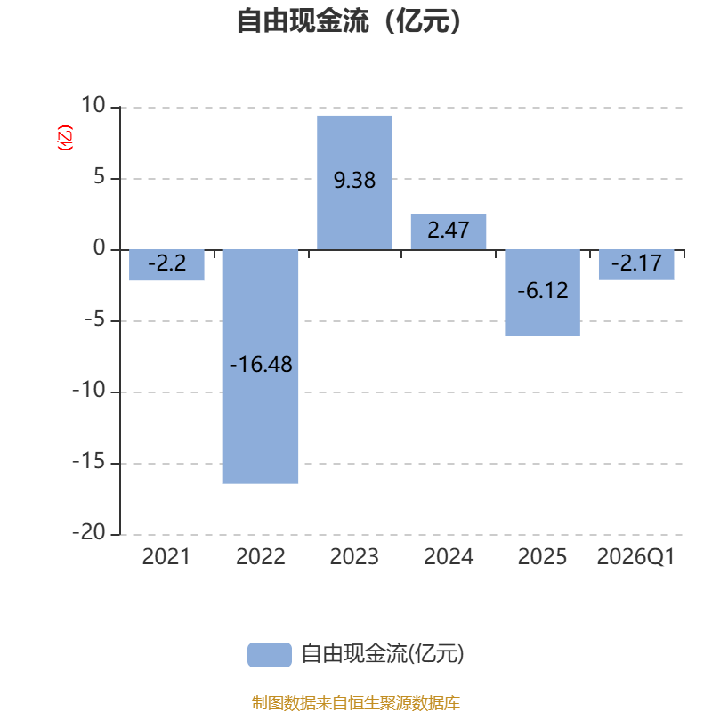 截至2026年一季度末,公司经营活动现金流净额为2.36亿元,同比增长59.17%;筹资活动现金流净额-3163.38万元,同比减少8.16亿元;投资活动现金流净额-2亿元,上年同期为-9.95亿元。