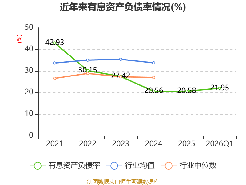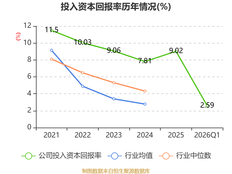 盈利能力方面, 2026年一季度公司加权平均净资产收益率为2.81%,同比上升0.32个百分点。公司2026年第一季度投入资本回报率为2.59%,较上年同期上升0.46个百分点。