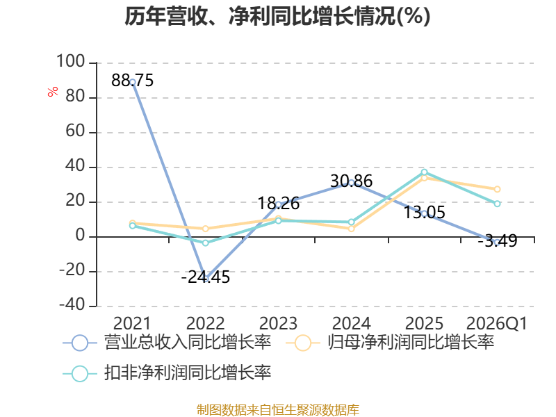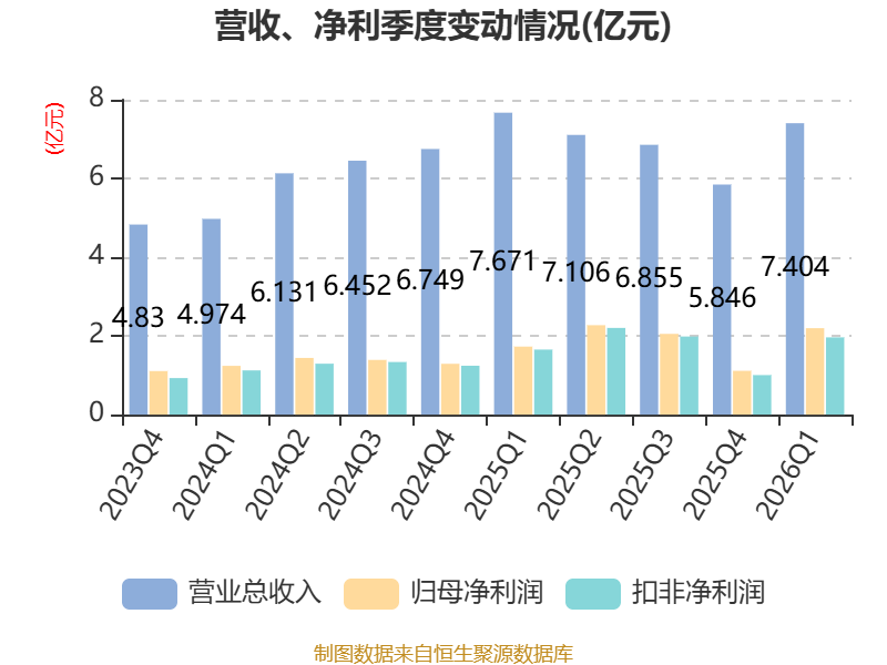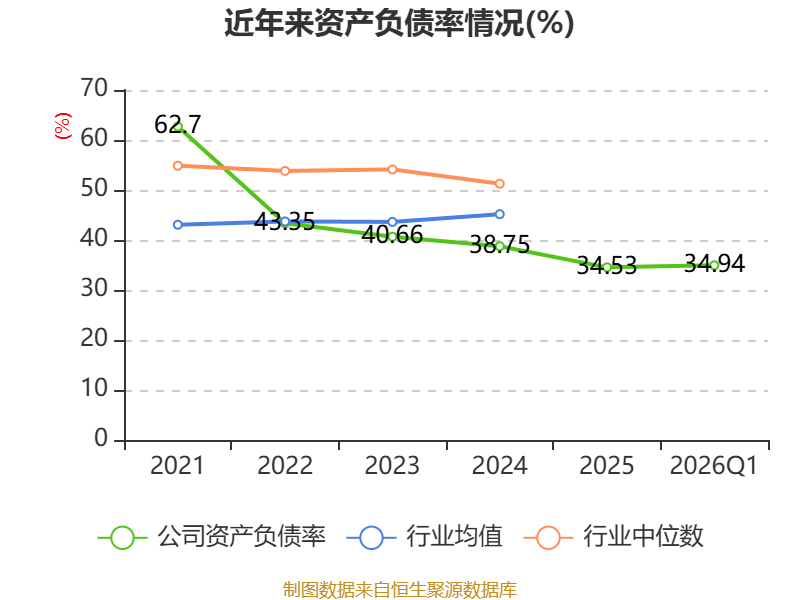 负债重大变化方面,截至2026年一季度末,公司长期借款较上年末增加9.85%,占公司总资产比重上升1.47个百分点;应付票据及应付账款较上年末减少18.13%,占公司总资产比重下降0.57个百分点;应付职工薪酬较上年末减少64.6%,占公司总资产比重下降0.38个百分点;应交税费较上年末增加38.96%,占公司总资产比重上升0.11个百分点。
