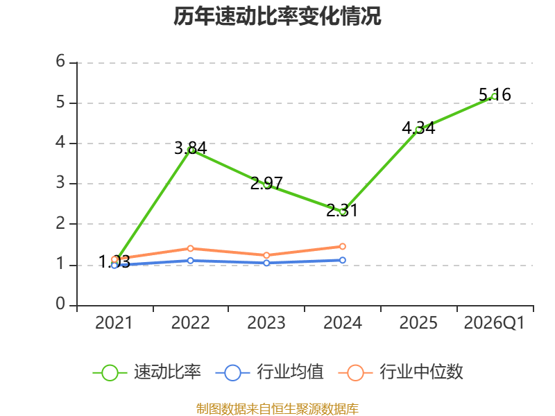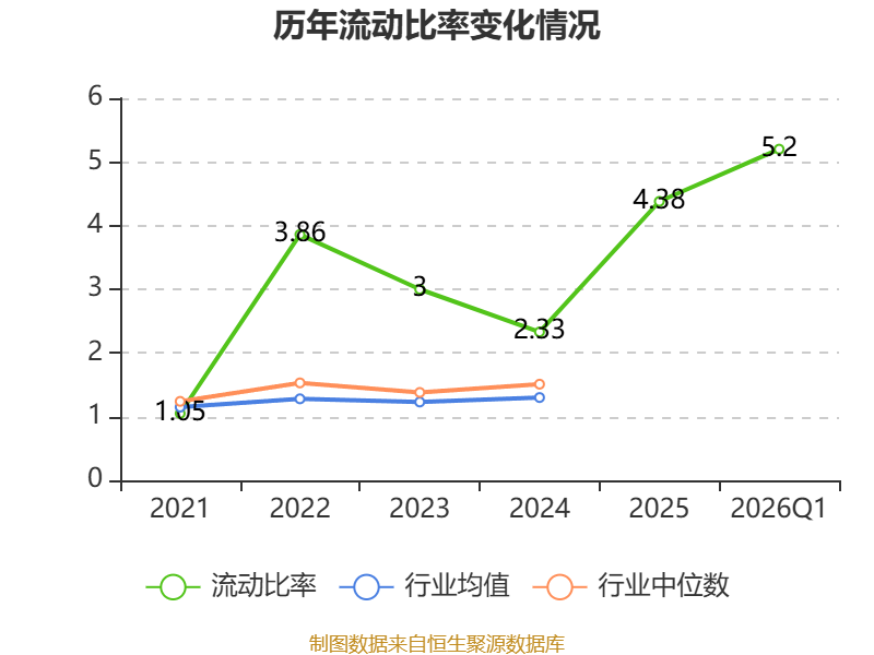 2026年第一季度,公司流动比率为5.2,速动比率为5.16。