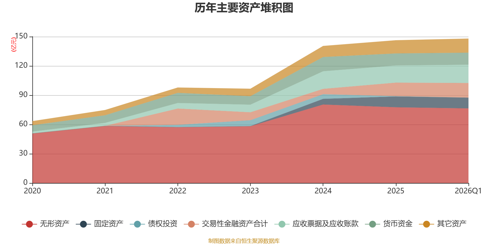 资产重大变化方面,截至2026年一季度末,公司无形资产较上年末减少1.49%,占公司总资产比重下降1.4个百分点;交易性金融资产合计较上年末增加9.07%,占公司总资产比重上升0.73个百分点;应收票据及应收账款较上年末增加6.72%,占公司总资产比重上升0.66个百分点;债权投资较上年末减少100%,占公司总资产比重下降0.21个百分点。