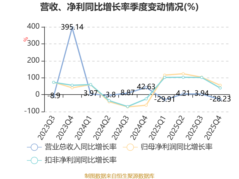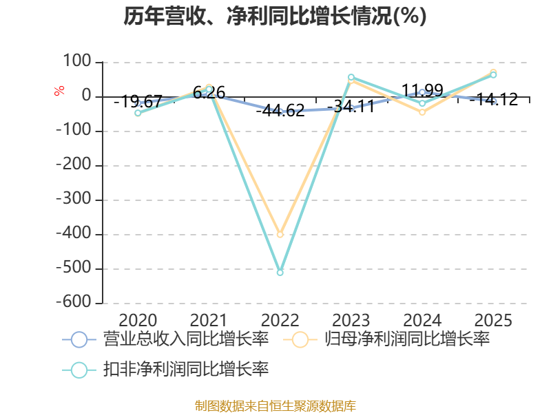 中证智能财讯罗欣药业(002793)4月23日披露2025年年度报告。2025年,公司实现营业总收入22.73亿元,同比下降14.12%;归母净利润亏损2.89亿元,上年同期亏损9.65亿元;扣非净利润亏损2.88亿元,上年同期亏损7.68亿元;经营活动产生的现金流量净额为2.53亿元,上年同期为-1.58亿元;报告期内,罗欣药业基本每股收益为-0.2718元,加权平均净资产收益率为-23.19%。