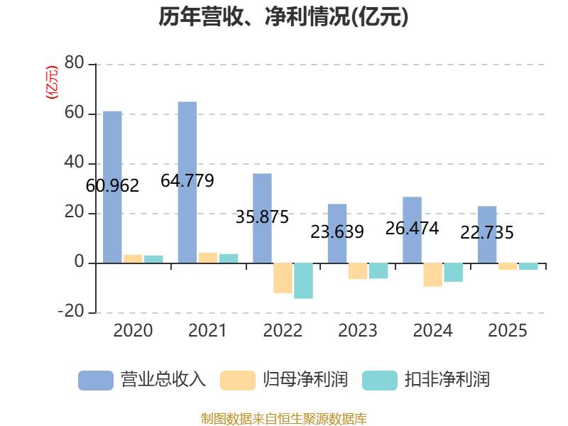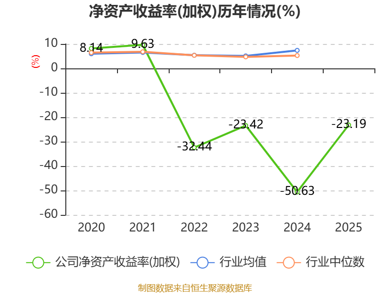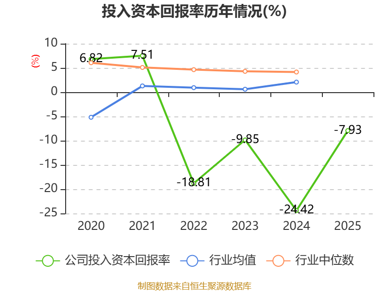 数据显示,2025年公司加权平均净资产收益率为-23.19%,较上年同期上升27.44个百分点。公司2025年投入资本回报率为-7.93%,较上年同期上升16.49个百分点。