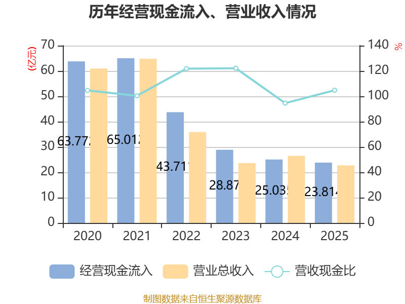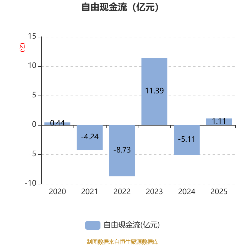 截至2025年,公司经营活动现金流净额为2.53亿元,同比增加4.11亿元;筹资活动现金流净额-3.35亿元,同比减少2.01亿元;投资活动现金流净额1.24亿元,上年同期为-133.53万元。