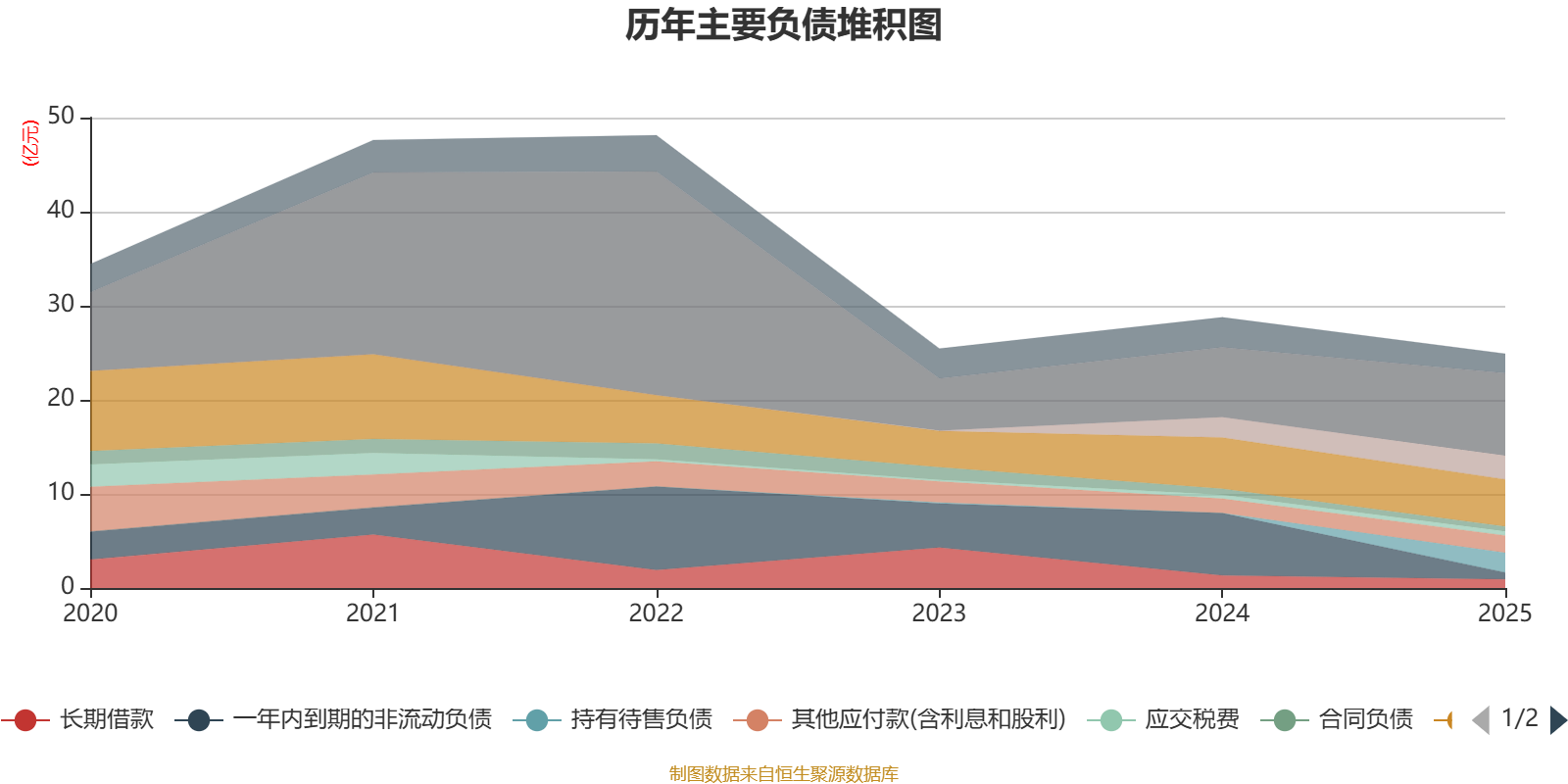 负债重大变化方面,截至2025年末,公司一年内到期的非流动负债较上年末减少89.18%,占公司总资产比重下降13.35个百分点;短期借款较上年末增加18.17%,占公司总资产比重上升6.43个百分点;持有待售负债占公司总资产的5.69%,上年末为0;交易性金融负债合计较上年末增加16.28%,占公司总资产比重上升1.77个百分点。