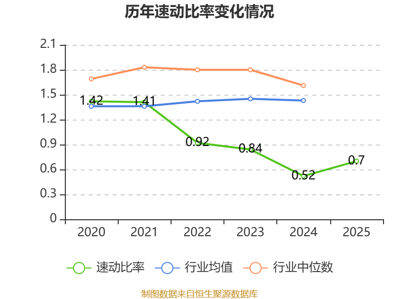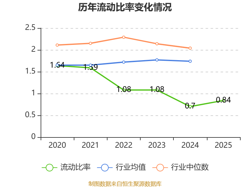 2025年,公司流动比率为0.84,速动比率为0.7。