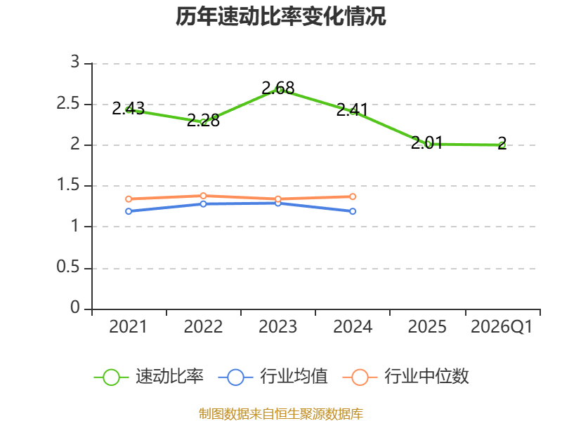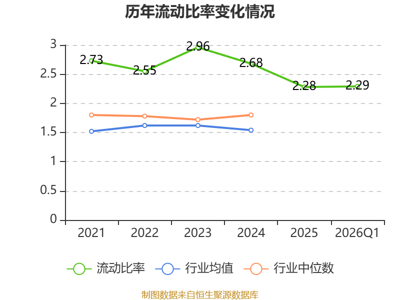 2026年第一季度,公司流动比率为2.29,速动比率为2。