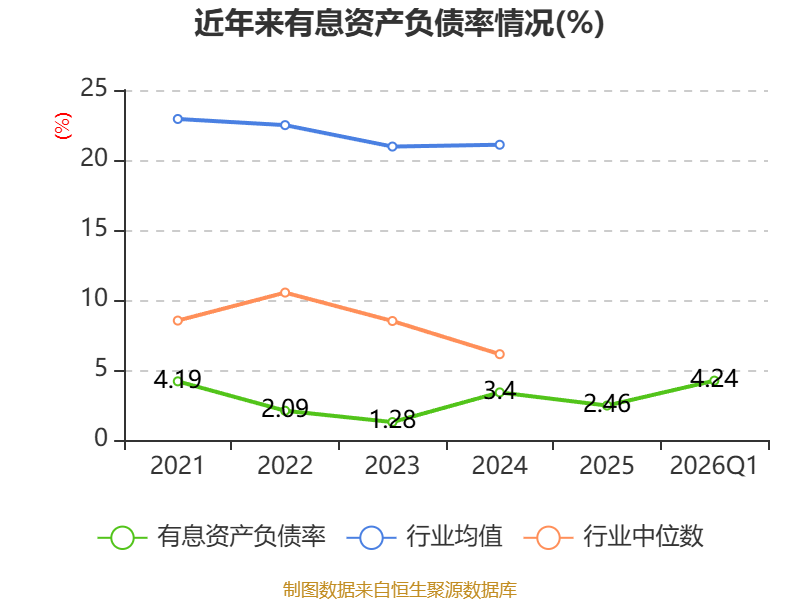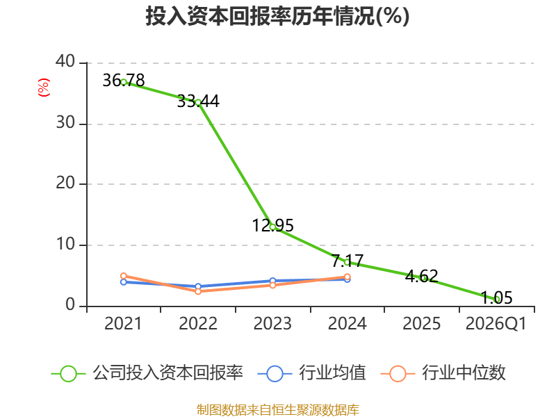 盈利能力方面, 2026年一季度公司加权平均净资产收益率为1.14%,同比下降0.24个百分点。公司2026年第一季度投入资本回报率为1.05%,较上年同期下降0.08个百分点。
