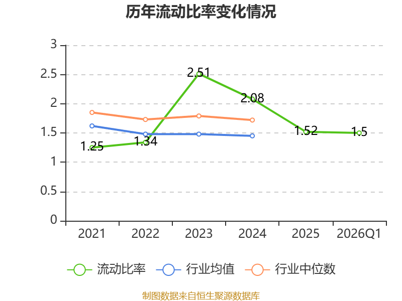 2026年第一季度,公司流动比率为1.5,速动比率为1.1。