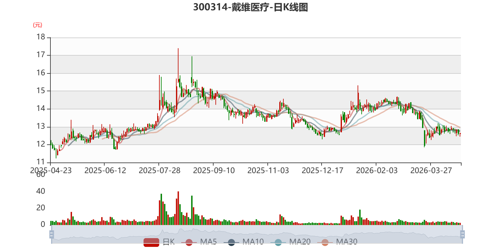 中证智能财讯戴维医疗(300314)4月23日披露2026年第一季度报告。公司实现营业总收入1.13亿元,同比下降6.90%;归母净利润988.58万元,同比下降56.19%;扣非净利润617.35万元,同比下降64.57%;经营活动产生的现金流量净额为-3745.91万元,上年同期为-3223.98万元;报告期内,戴维医疗基本每股收益为0.0343元,加权平均净资产收益率为0.80%。