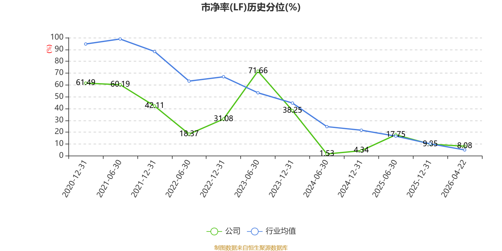 市盈率、市净率为负时,不显示当期分位数,会导致折线图中断。
