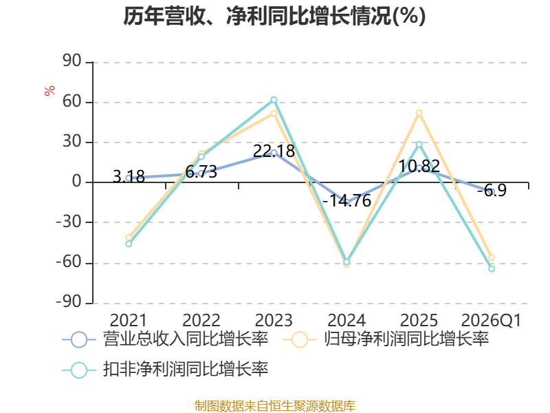 资产重大变化方面,截至2026年一季度末,公司交易性金融资产合计较上年末减少39.42%,占公司总资产比重下降4.17个百分点;货币资金较上年末增加3.95%,占公司总资产比重上升2.24个百分点;存货较上年末增加5.55%,占公司总资产比重上升1.15个百分点;在建工程合计较上年末增加0.93%,占公司总资产比重上升0.56个百分点。