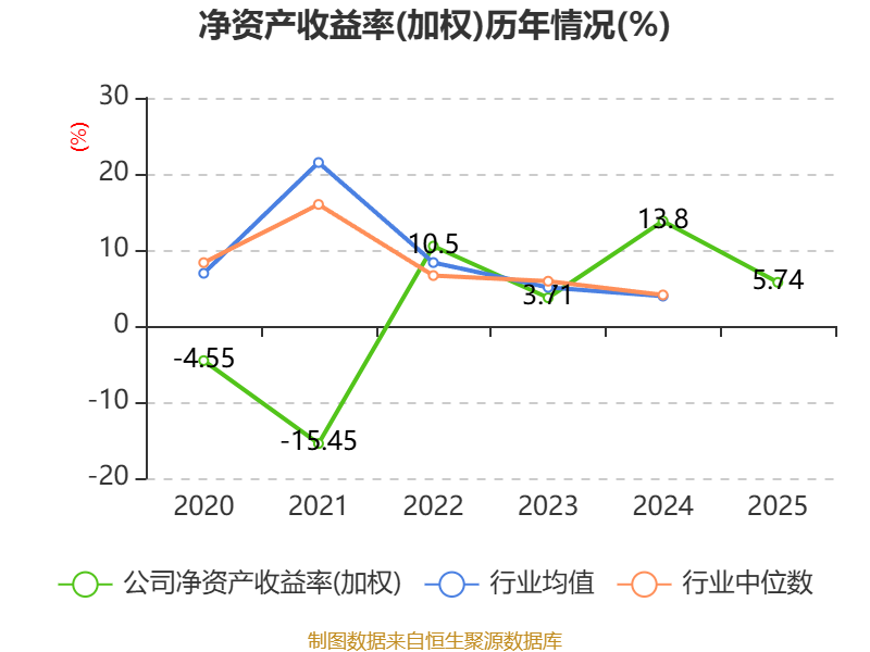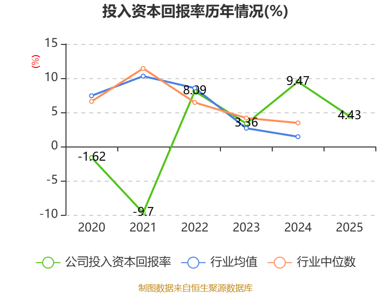 数据显示,2025年公司加权平均净资产收益率为5.74%,较上年同期下降8.06个百分点。公司2025年投入资本回报率为4.43%,较上年同期下降5.04个百分点。