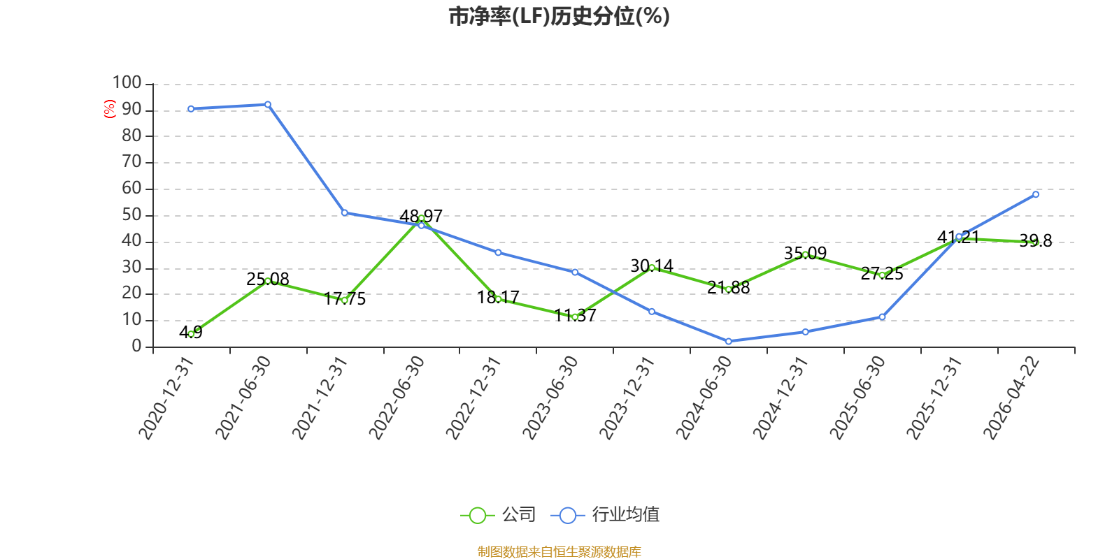 市盈率、市净率为负时,不显示当期分位数,会导致折线图中断。