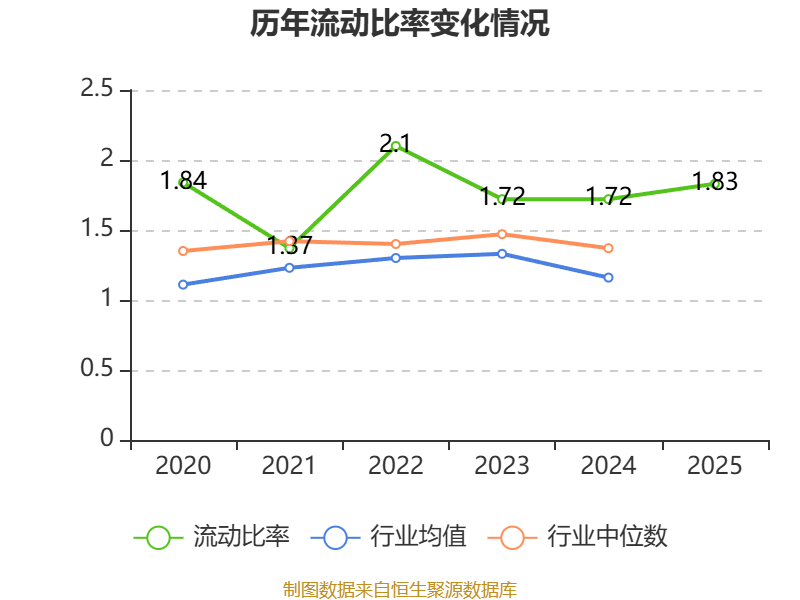 2025年,公司流动比率为1.83,速动比率为1.4。
