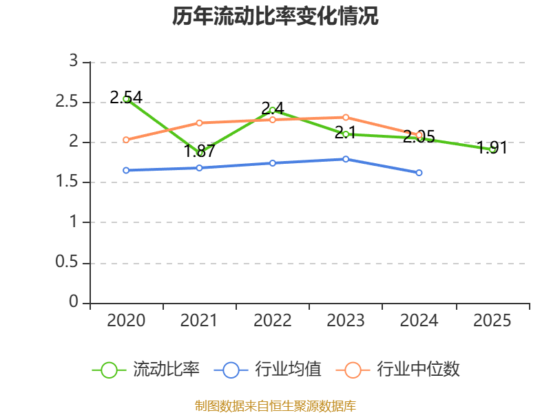 2025年,公司流动比率为1.91,速动比率为1.83。