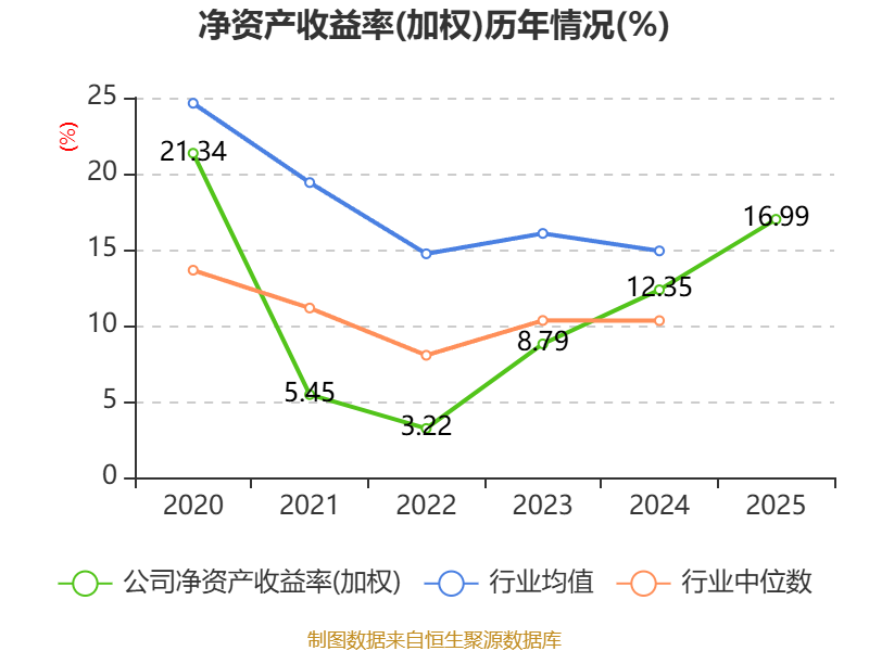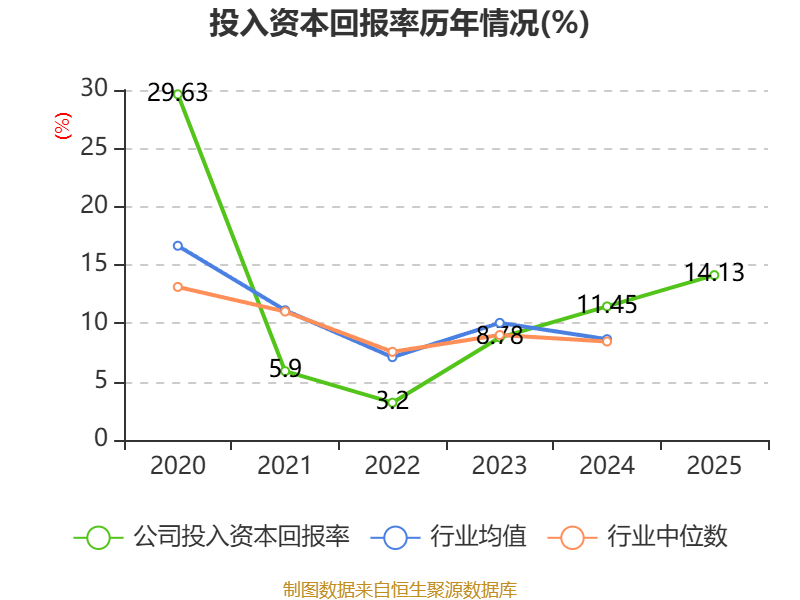 数据显示,2025年公司加权平均净资产收益率为16.99%,较上年同期上升4.64个百分点。公司2025年投入资本回报率为14.13%,较上年同期上升2.68个百分点。