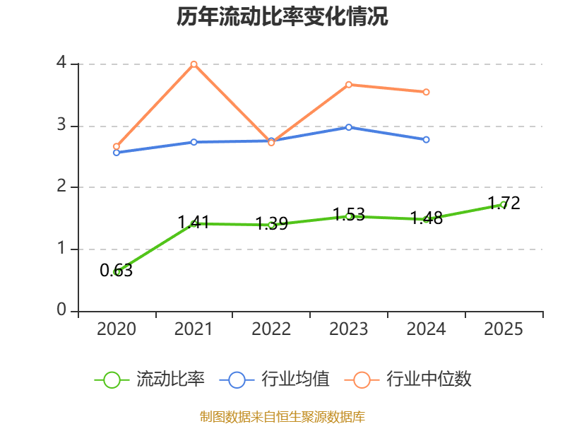 2025年,公司流动比率为1.72,速动比率为1.54。