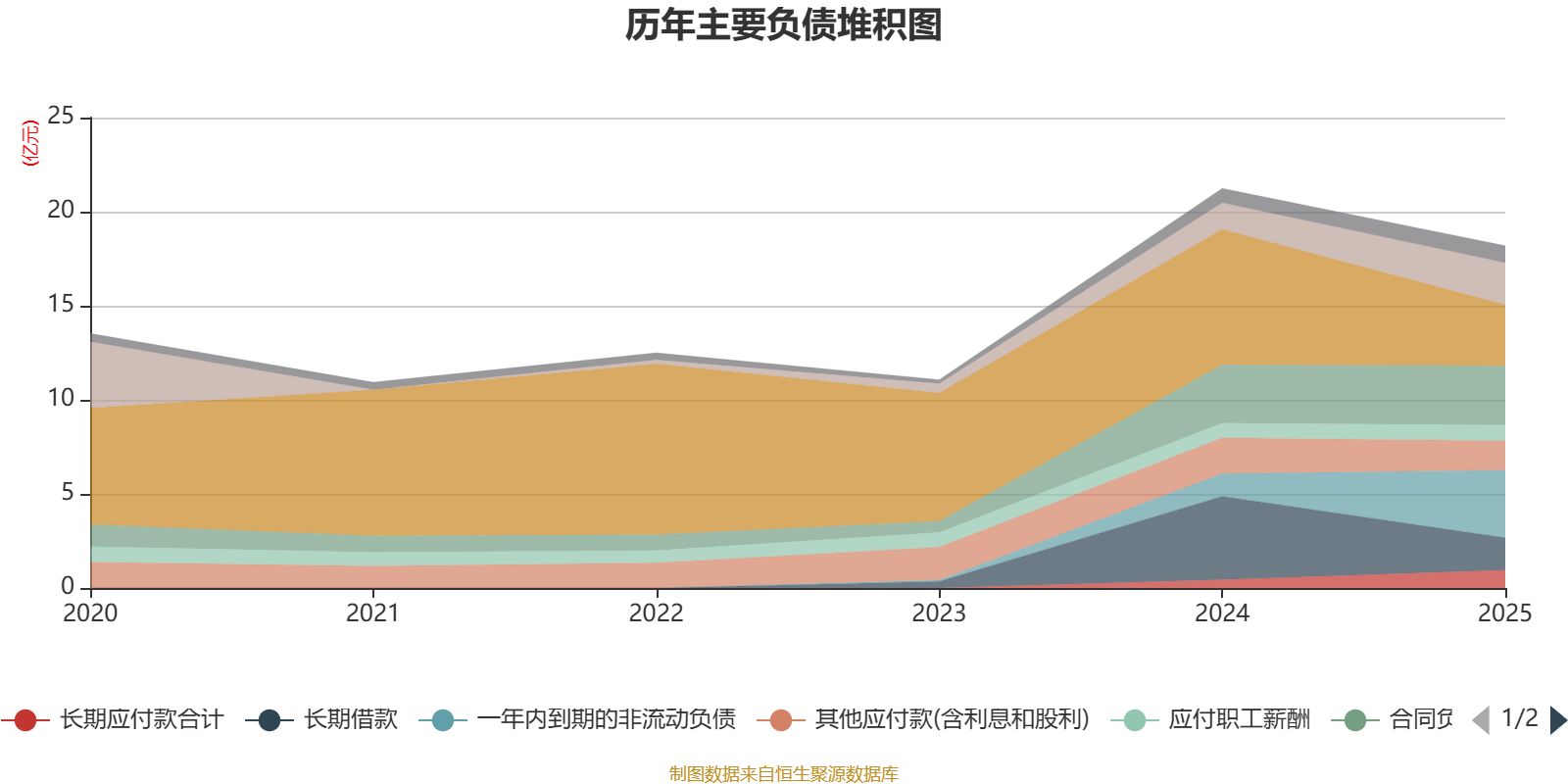 负债重大变化方面,截至2025年末,公司应付票据及应付账款较上年末减少54.86%,占公司总资产比重下降10.82个百分点;长期借款较上年末减少61.19%,占公司总资产比重下降7.43个百分点;一年内到期的非流动负债较上年末增加198.14%,占公司总资产比重上升6.6个百分点;短期借款较上年末增加59.09%,占公司总资产比重上升2.3个百分点。