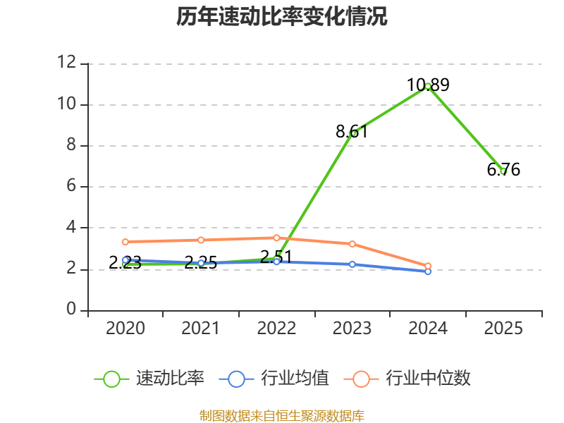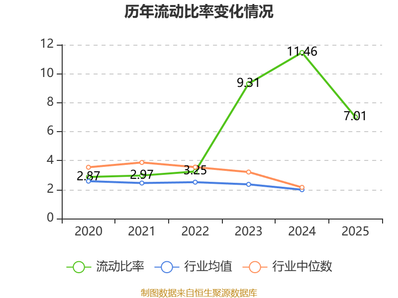 2025年,公司流动比率为7.01,速动比率为6.76。