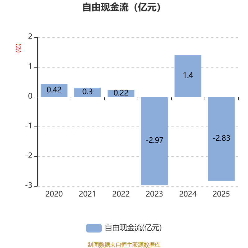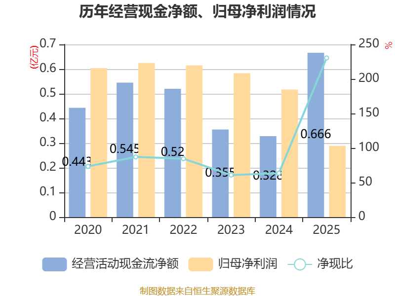 截至2025年,公司经营活动现金流净额为6657.08万元,同比增长102.84%;筹资活动现金流净额-3308.65万元,同比增加6.23万元;投资活动现金流净额-3.82亿元,上年同期为1.01亿元。