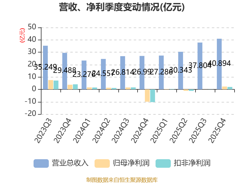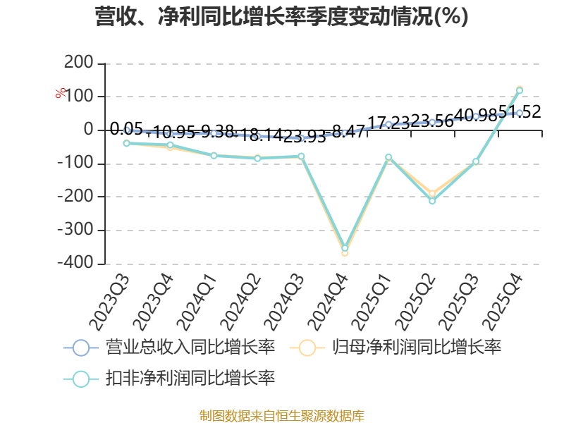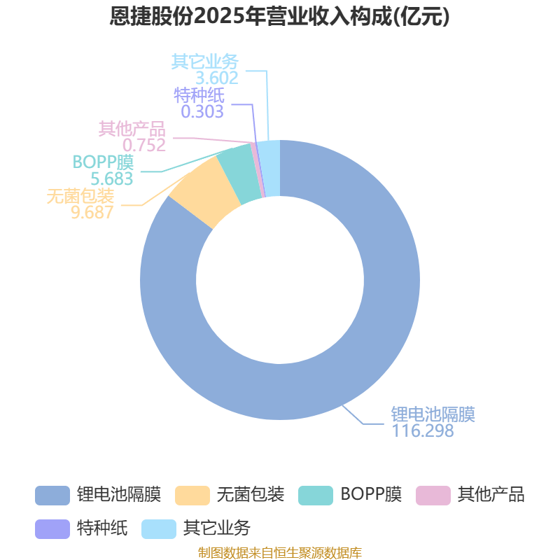 中证智能财讯恩捷股份(002812)4月23日披露2025年年度报告。2025年,公司实现营业总收入136.33亿元,同比增长34.13%;归母净利润1.43亿元,同比扭亏;扣非净利润1.11亿元,同比扭亏;经营活动产生的现金流量净额为11.44亿元,同比下降1.26%;报告期内,恩捷股份基本每股收益为0.15元,加权平均净资产收益率为0.58%。