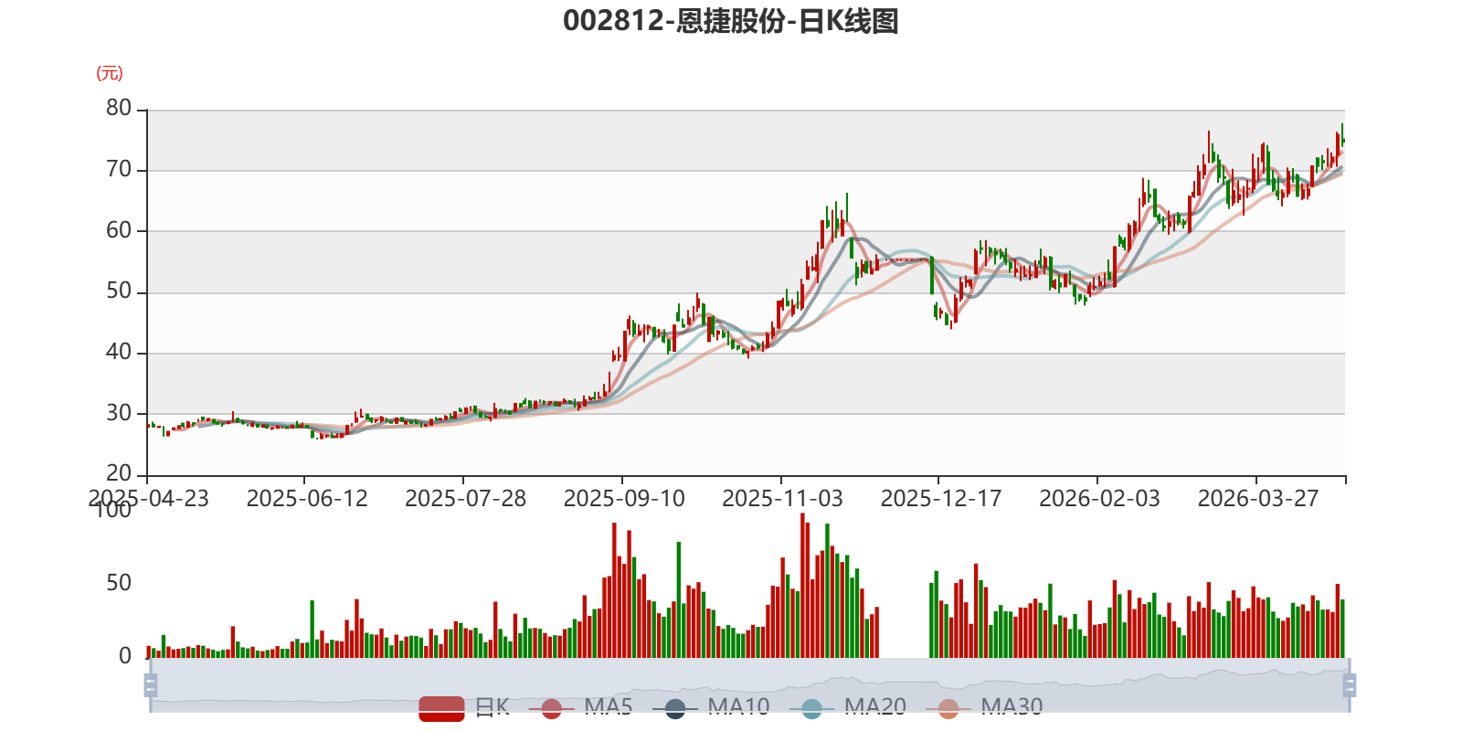 值得注意的是,中登公司数据显示,截至2026年4月17日,恩捷股份19.59%股份处于质押状态。年报显示,第二大股东玉溪合益投资有限公司质押7696.06万股公司股份,占其全部持股的64.43%;第一大股东PAUL XIAOMING LEE质押6500万股公司股份,占其全部持股的50.61%;第三大股东李晓华质押4097万股公司股份,占其全部持股的50.74%。