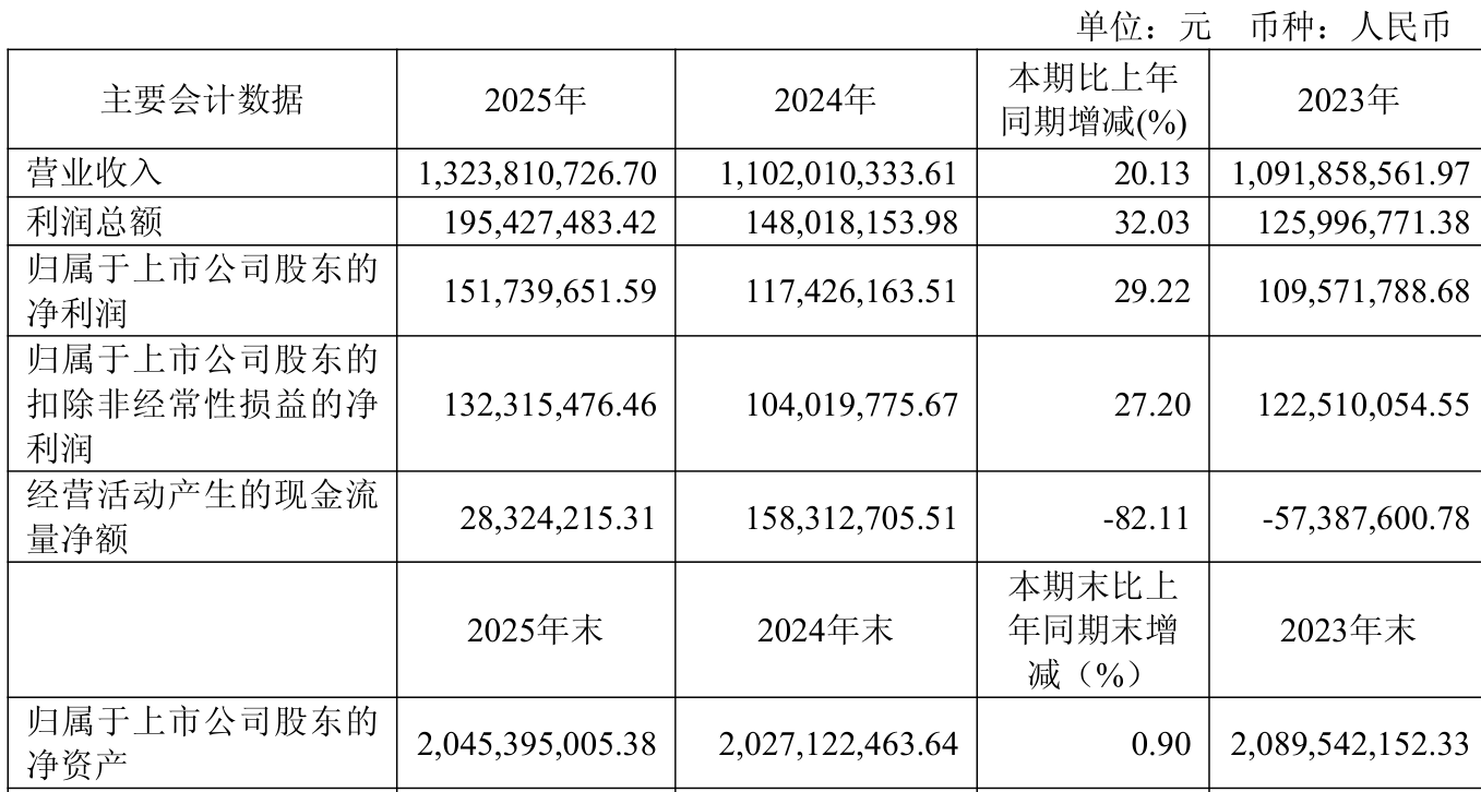 中证智能财讯毕得医药(688073)4月23日披露2025年年度报告。2025年,公司实现营业总收入13.24亿元,同比增长20.13%;归母净利润1.52亿元,同比增长29.22%;扣非净利润1.32亿元,同比增长27.20%;经营活动产生的现金流量净额为2832.42万元,同比下降82.11%;报告期内,毕得医药基本每股收益为1.75元,加权平均净资产收益率为7.52%。公司2025年度分配预案为:拟向全体股东每10股派现11.6元(含税)。