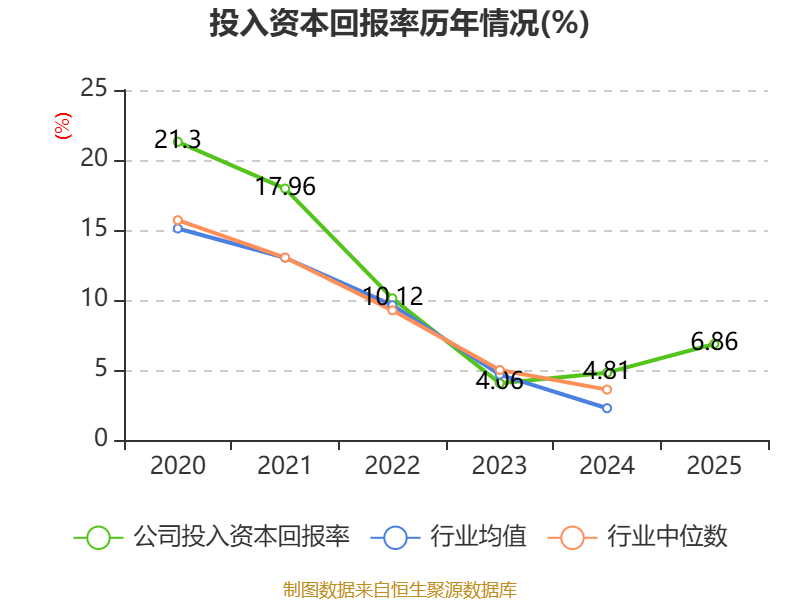 数据显示,2025年公司加权平均净资产收益率为7.52%,较上年同期上升1.74个百分点。公司2025年投入资本回报率为6.86%,较上年同期上升2.05个百分点。