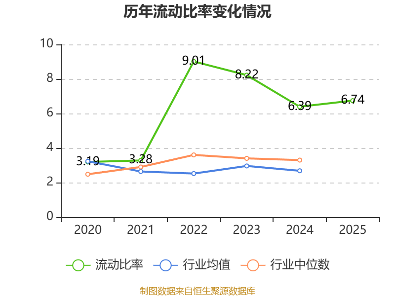 2025年,公司流动比率为6.74,速动比率为3.93。