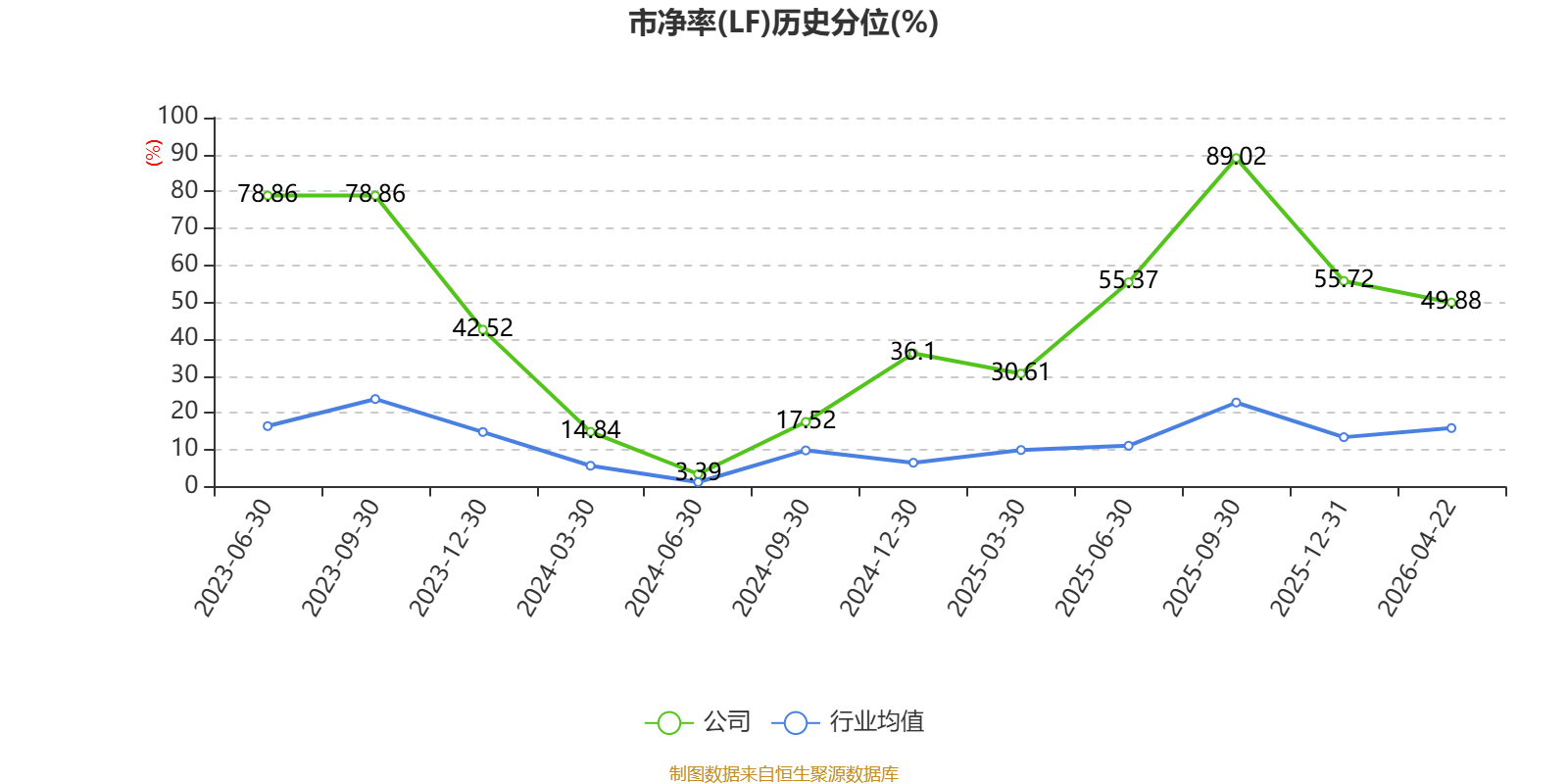 市盈率、市净率为负时,不显示当期分位数,会导致折线图中断。