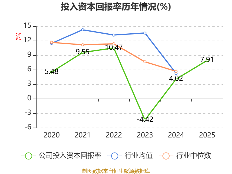 数据显示,2025年公司加权平均净资产收益率为13.73%,较上年同期上升8.72个百分点。公司2025年投入资本回报率为7.91%,较上年同期上升3.89个百分点。