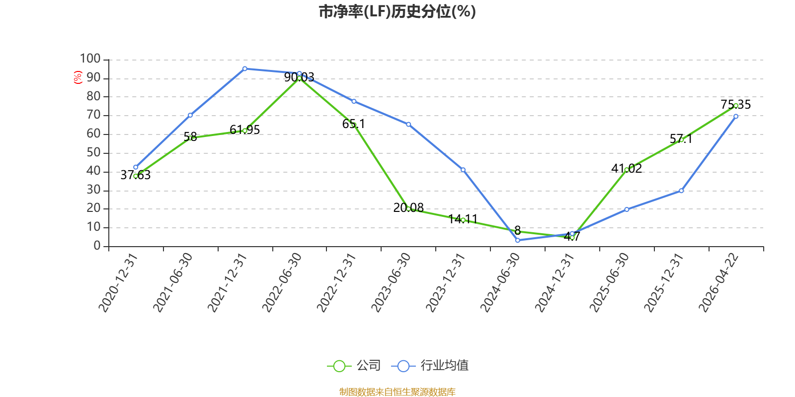 市盈率、市净率为负时,不显示当期分位数,会导致折线图中断。