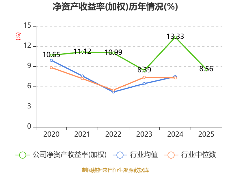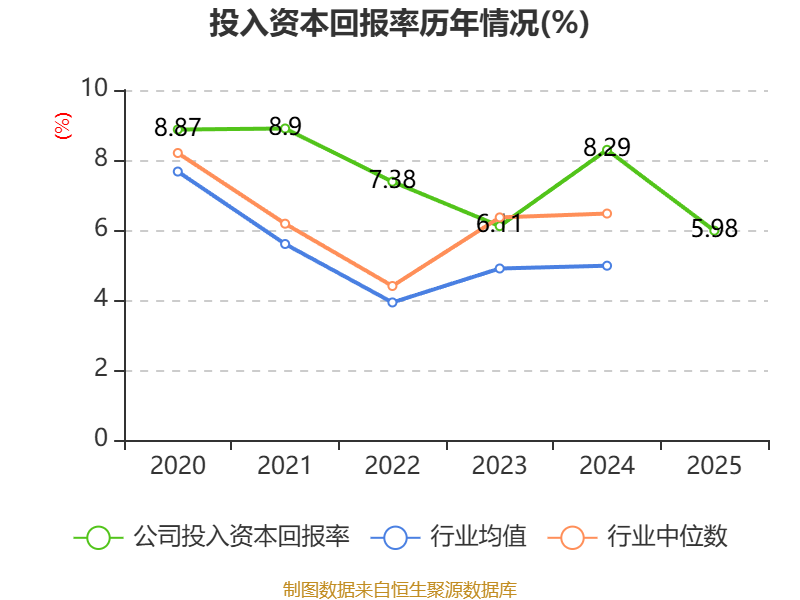 数据显示,2025年公司加权平均净资产收益率为8.56%,较上年同期下降4.77个百分点。公司2025年投入资本回报率为5.98%,较上年同期下降2.31个百分点。